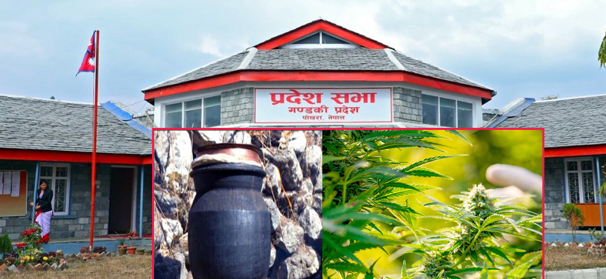 काठमाडौं । गण्डकी प्रदेश सरकार गाँजा र लोकल रक्सीलाई वैधानिक गर्ने विषयमा अन्य प्रदेशभन्दा अग्र स्थानमा देखिएको छ । गण्डकी प्रदेश सरकारले चालू हिउँदे अधिवेशनमा दर्जन भन्दा बढी विधेयक ल्याउने तयारीमा रहेको बेला नेपालमा गाँजालाई वैधानिकरण र लोकल रक्सीलाई ब्रान्डिङ गरे प्रदेशको आर्थिक अवस्था सुधार गर्ने विषयमा सकरात्मक देदिएको छ । उक्त विषयमा गण्डकी प्रदेश जनताले सकरात्मक भएको अभिव्यक्ती दिइरहेका छन् । सरकारले पनि गाँजालाई वैधानिकता दिने विषयमा कुरा उठाइसकेको छ । गण्डकी प्रदेश सरकारको अधिवेशन बुधवारदेखि अधिवेशन सुरु भइसेको छ । पहिलो दिन यसअघि संसदीय समितिमा छलफलका क्रममा रहेको आम सञ्चार विधेयक र बिउ बिजनसम्बन्धी विधेयक संशोधित प्रतिवेदन सहित संसदमा पेस गरिएको छ ।