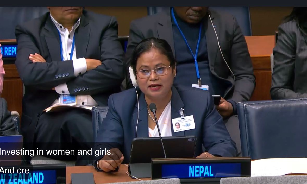 अमेरिकाको न्यूयोर्कमा जारी युएन वुमनको ‘द कमिसन अन दि स्टाटस अफ वुमन’ सम्मेलनमा नेपालको प्रतिनिधित्व गर्दै मन्त्री चौधरीले महिलाले विश्वको आधा जनसंख्याको आधा सम्भावना बोकेको भएतापनि विश्वव्यापी लैङ्गिक समानता हासिल गर्न चुनौतिहरु रहेको बताए।