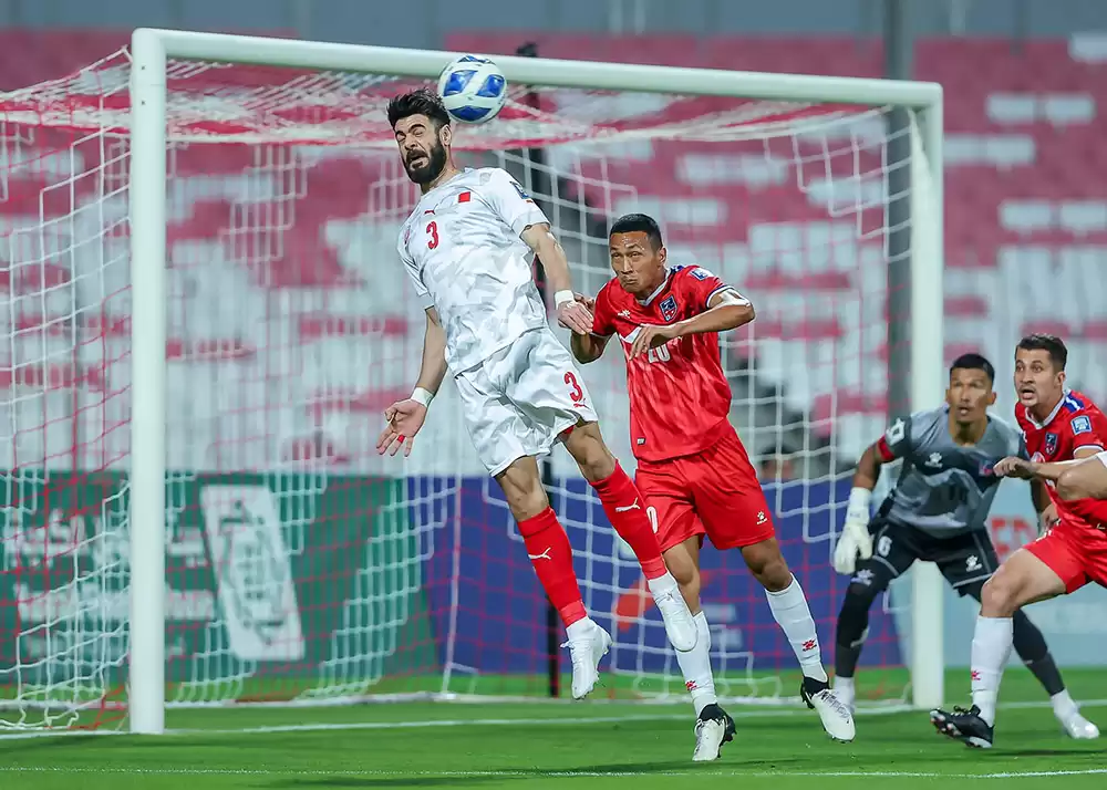 विश्वकप र एसियन कप दुवैको छनोट खेल अन्तर्गत बहराइनको नेशनल स्टेडियममा सम्पन्न खेलमा बहराइनले नेपाललाई ५-० गोल अन्तरले पराजित गरेको हो ।