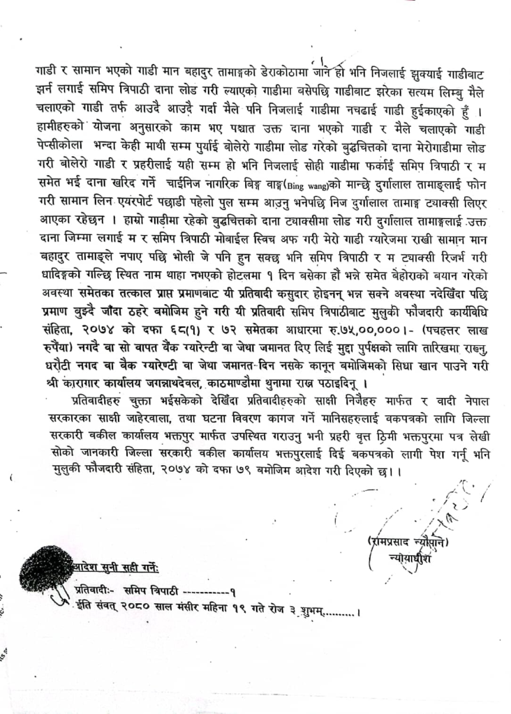 ‘हो केही दुष्मनी थियो तर त्यसको आधारमा अरू कसैले गरेको अपराधमा मुछेर माला किन्नका लागि लगानी गरी डुबेर कानुनी उपचार खोजिरहेका सिजनलाई नै उल्टै अपराधी करार गर्न खोज्नु के न्यायसङ्गत हो त ? उनीहरूको प्रश्न छ । ‘प्रहरी अनुसन्धान अघि बढिरहेको छ, कसैले पोलेकै आधारमा केही दिन अनुसन्धानका लागि नियन्त्रणमा लिएको व्यक्तिलाई अपराधी करार गरेर लेख्नु झन् ठुलो अपराध हो ।’