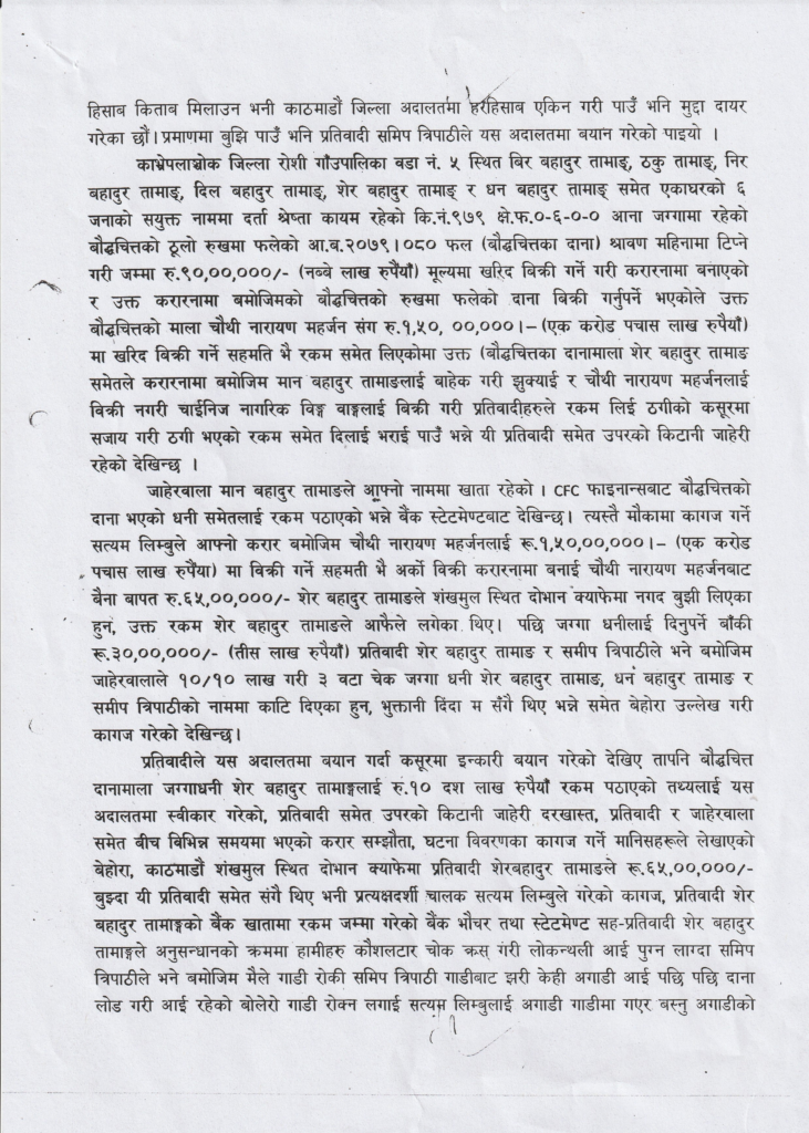 ‘हाम्रो पैसा मिलाइदिने विषयमा कुराकानी हुन्थ्यो, अर्को कुरा हामी कानुनी उपचारमा पनि थियौँ, हामीले रुख काट्नु पर्ने कुनै कारण छैन, सिजन निर्दोष छ’उनीहरूले भने ।
