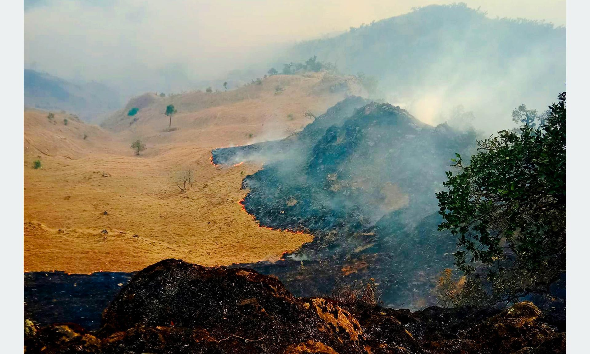बागलुङ । बागलुङको बरेङ गाउँपालिका–२ को सल्लेरी सामुदायिक वनमा गत फागुनको ९ गते भीषण डढेलो लाग्याे । सो डढेलो गाउँले र प्रहरीको सक्रियतामा दुईपछि नियन्त्रणमा आयो । त्यसभन्दा अगाडि जिल्लाको कुनै पनि वनमा डढेलो लागेकाे थिएन ।