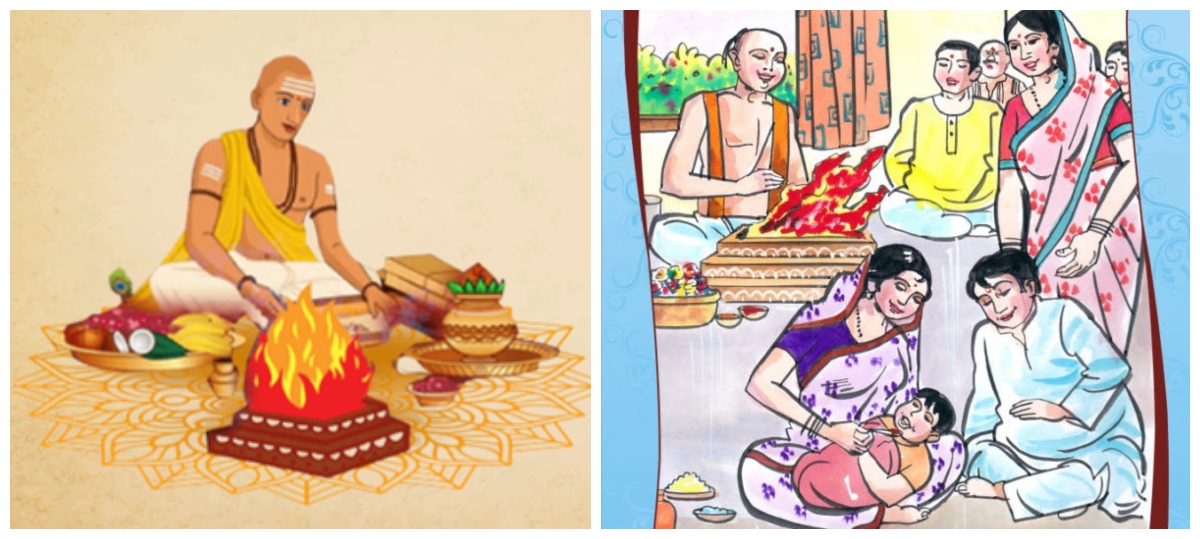 व्राम्हण वा पण्डितले बच्चालाई आफ्नो गोत्र, नाम, राशि र नक्षत्र बताई शुभ कामना दिन्छन् । त्यसपछि वाह्मणले बच्चाको लागि गणेश, लक्ष्मी, सरस्वती, अन्नपूर्ण, अग्नि र अन्य देवताहरूको पूजा गर्छन् ।