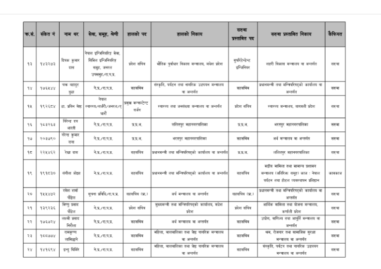 काठमाडौं। सरकारले एकैपटक २८ जना सहसचिवहरुको सरुवा गरेको छ ।