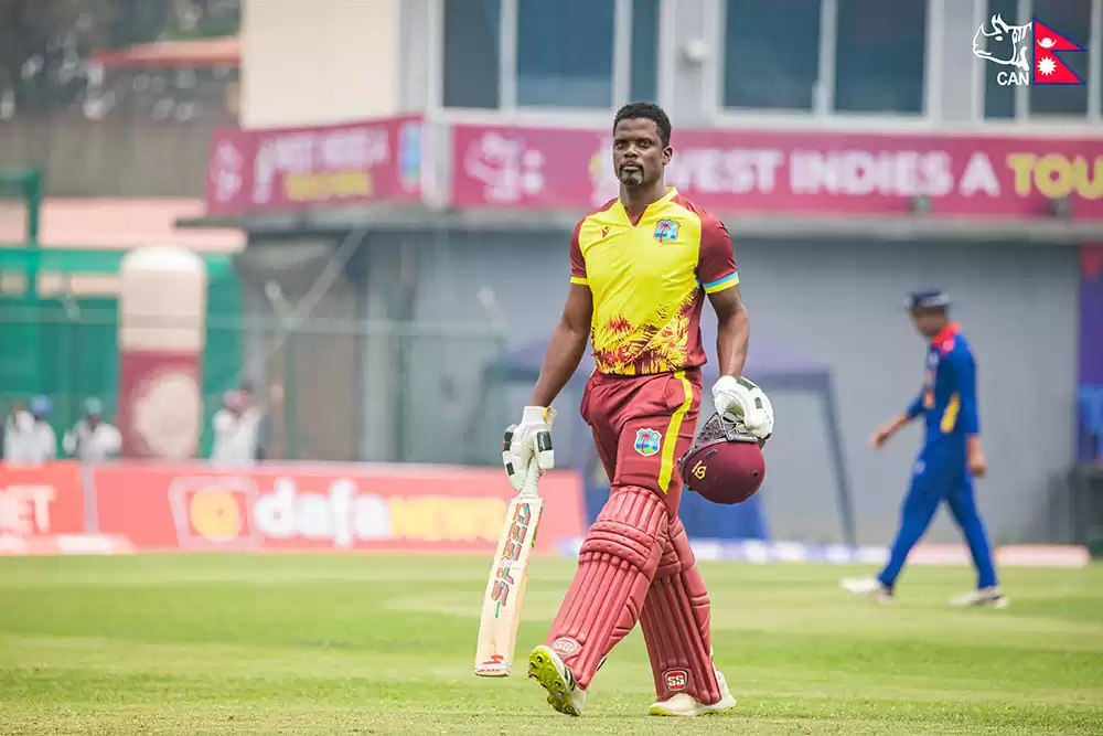 यस अघि वेस्ट इन्डिज ए का एलिक अथानाज ४७ रन बनाएर आउट भएका थिए भने जोन्सन चर्लेज शुन्यमा र आन्द्रे फ्लेचर १३ रन बनाएर आउट भएका थिए ।