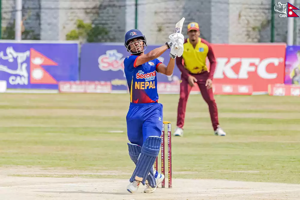 काठमाडौँ । कप्तान रोहित पौडेलले वेस्ट इन्डिज ए विरुद्ध अर्धशतक पुरा गरेका छन् ।