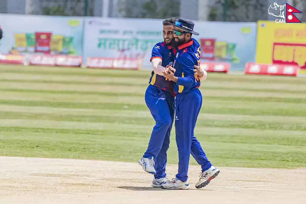 काठमाडौँ । नेपालले वेस्ट इन्डिज ए को तेस्रो विकेट लिएको छ ।