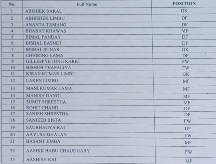 नेपाली टोलीका मुख्य प्रशिक्षक भिन्सेन्जो अल्बर्टो एनेसले आइतबार २३ सदस्यीय टोली घोषणा गरेका हुन् ।