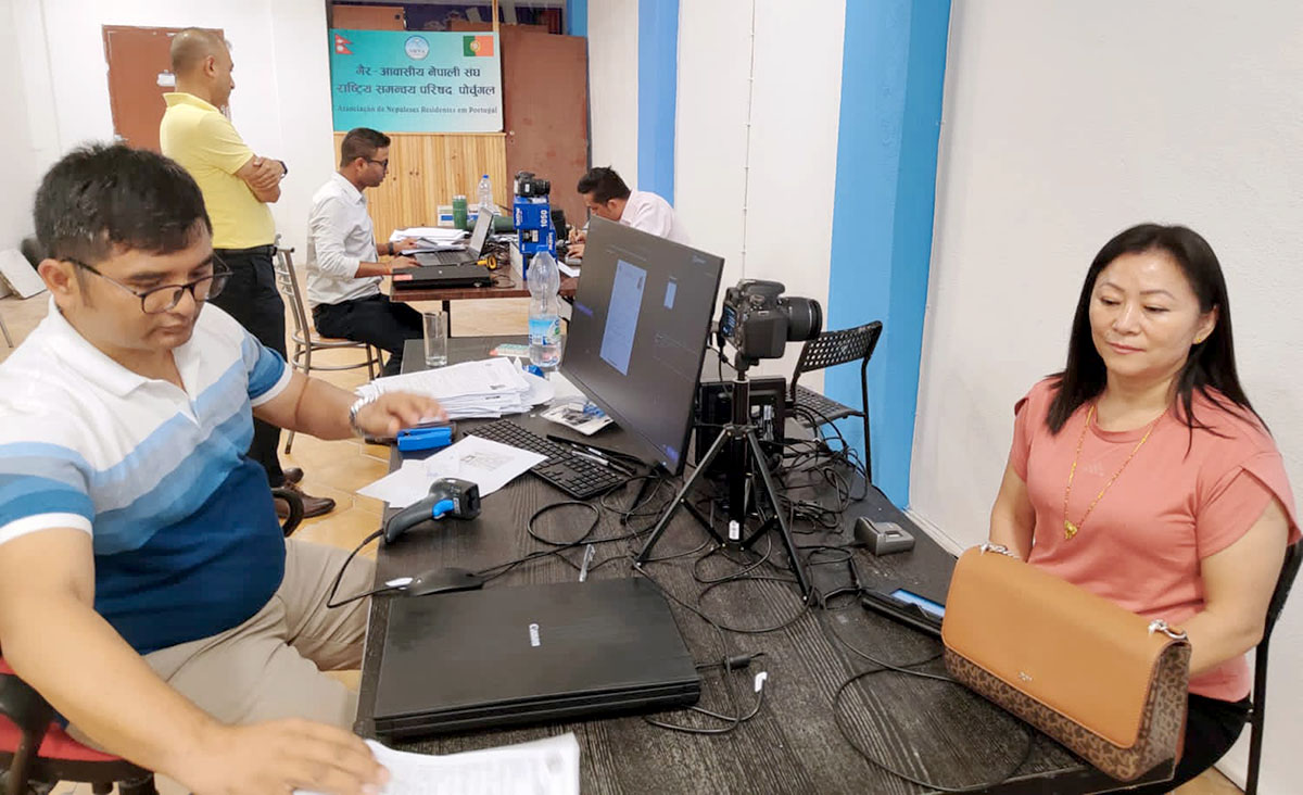 विद्युतीय राहदानी (ई–पासपोर्ट) का लागि आवेदन सङ्कलन गर्न विभागका निर्देशक मोतिबहादुर श्रीस नेतृत्वको तीन सदस्यीय टोली बिहीबार राजधानी लिस्बन आइपुगेको हो । टोलीले लिस्बनस्थित गैरआवासीय नेपाली सङ्घ पोर्चुगलको हलमा ‘घुम्ती सेवा शिविर’ सञ्चालन गरेर शुक्रबारदेखि सेवा दिन सुरु गरेको छ । सेवा सुरु भएसँगै शिविर वरपर रहेका सेवाग्राही नेपालीको घुइँचो लाग्न थालेको टोलीका प्रमुख एवं विभागका निर्देशक मोतिबहादुर श्रीसले जानकारी दिए ।
