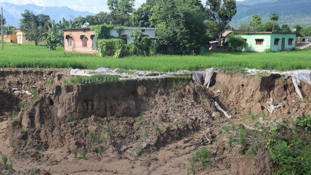 असारपछिको वर्षाले स्थानीयको धानखेती कटान हुन थालेको छभने चार घर जोखिममा परेका छन् । नहर नजिकै रहेको एक परिवार विस्थापित बनेको छ । धानखेती गरेको जग्गा कटान हुन थालेपछि स्थानीयले प्लास्टिकले छोपेर नियन्त्रण गर्ने प्रयास गरिरहेका छन् ।