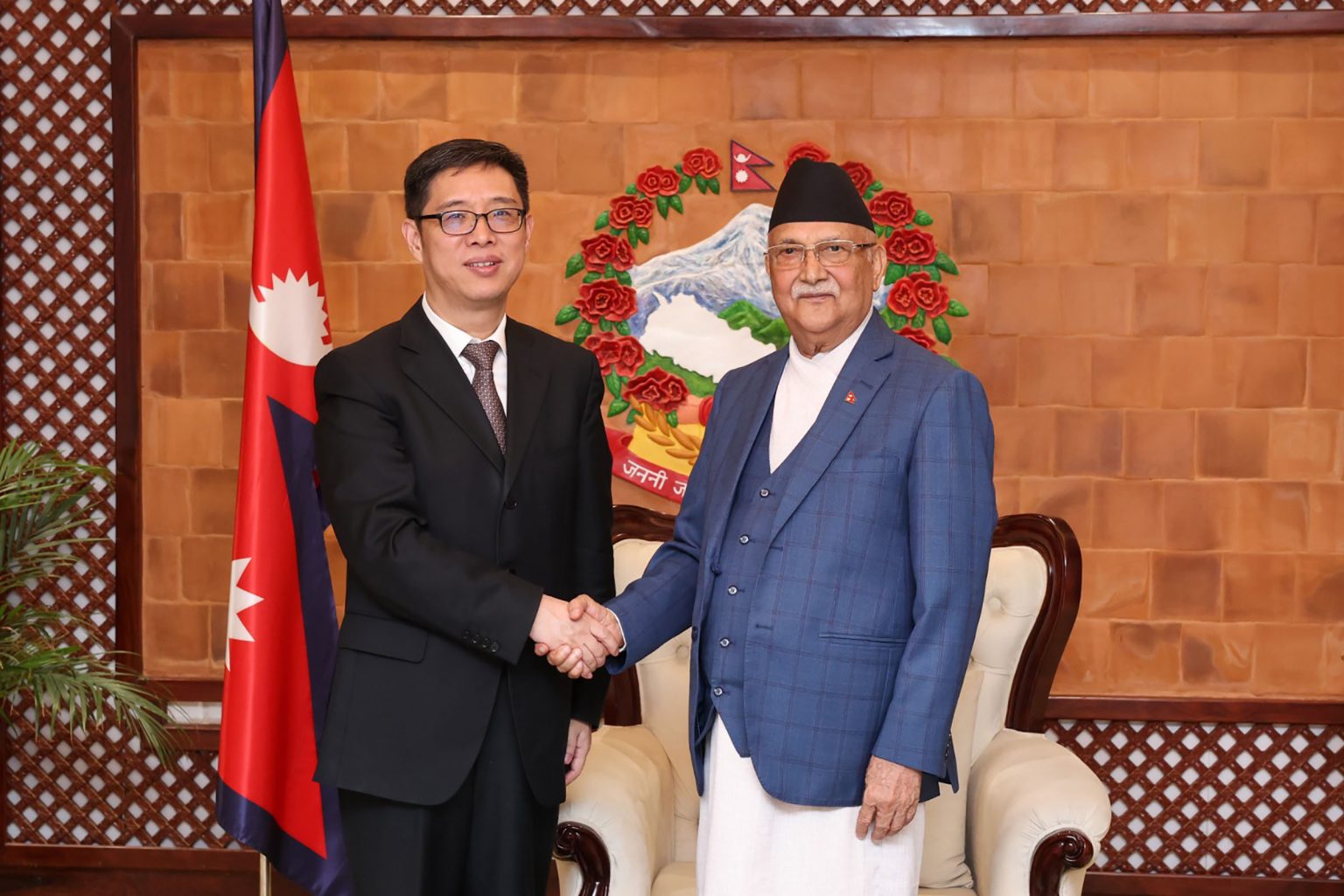 काठमाडौं । प्रधानमन्त्री केपी शर्मा ओलीसमक्ष चीनको अन्तर्राष्ट्रिय विकास सहयोग निकायका उपाध्यक्ष याङ वेईकुनले आज शिष्टाचार भेट गरेका छन् ।