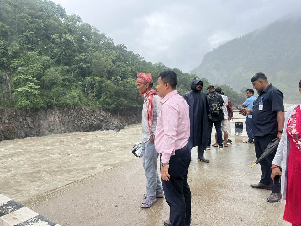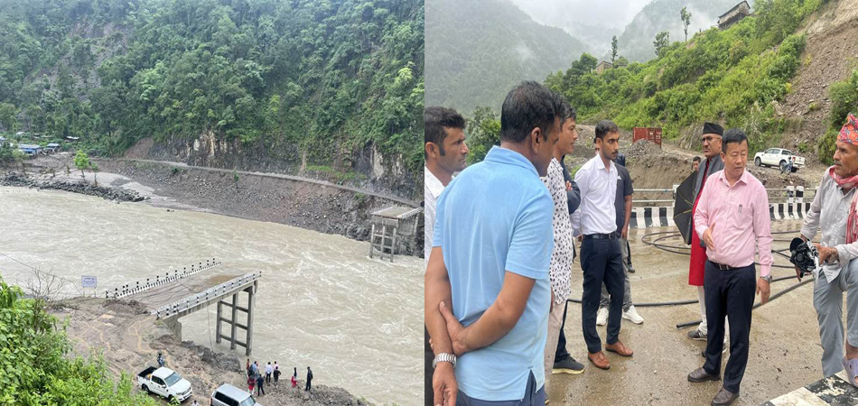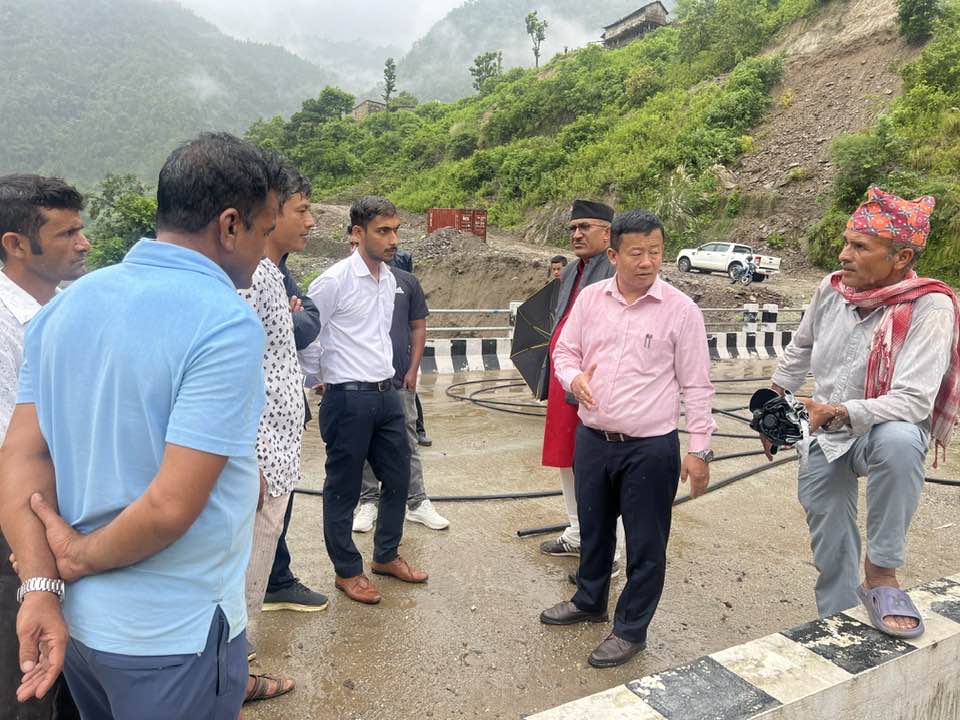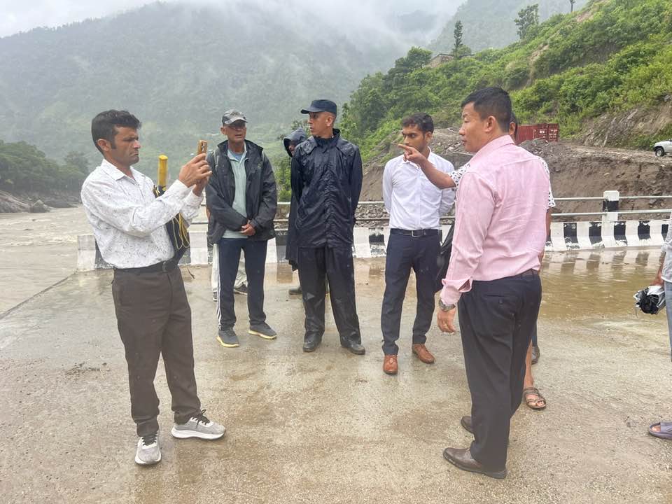 काठमाडौं । कोशी प्रदेशका भौतिक तथा पुर्वाधारमन्त्री भुपेन्द्र राईले बाढी पहिरो क्षतिग्रस्थ स्थानको अवलोकन गरेका छन् । बिहिबार मन्त्री राई अविरल बर्षाको कारण कोशीले बगाएको फोक्सिङटारमा निर्माण भएको मोटरेबल पुल र सगरमाथा लोकमार्ग अन्तर्गत उदयपुर खण्डको निरीक्षण गर्न गाइघाट (दिक्तेल सडक कार्यलयका इन्जिनियरहरु सहित बाढी पहिरो प्रभावित क्षेत्र पुगेर अवलोकन गरेका हुन् । मन्त्री राईले बाढी पहिरो प्रभावित क्षेत्रमा पुगेर दुःख व्यक्त गर्दै निरीक्षण र अनुगमन पश्चात प्रभावित क्षेत्रको मर्मत सम्भार गरी सवारी आवगमन गर्ने वातावरण सिर्जना गर्न सम्बन्धित निकायलाई निर्देशन समेत दिएका छन् ।
