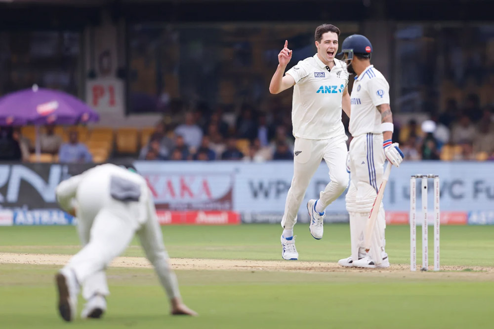 भारतको ब्याटिंग लाइन ध्वस्त गर्नेक्रममा न्यूजील्याण्डका विलियम पिटरले ३ विकेट लिए भने म्याट हेनरीले २ तथा टिम साउथीले एक विकेट लिएका छन् ।