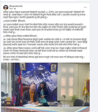 - भौतिक पुर्वाधार विकास मन्त्रीको हैसियतले