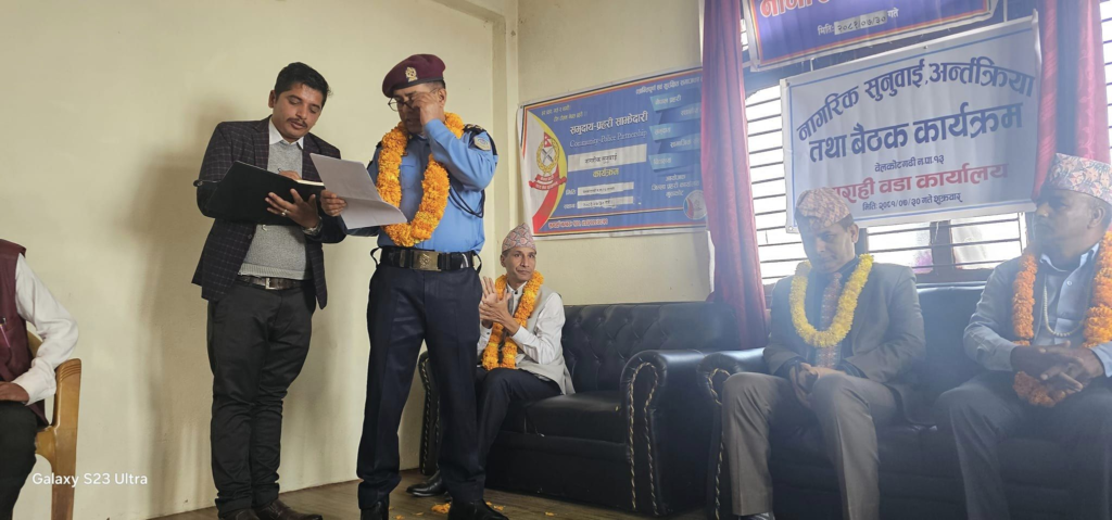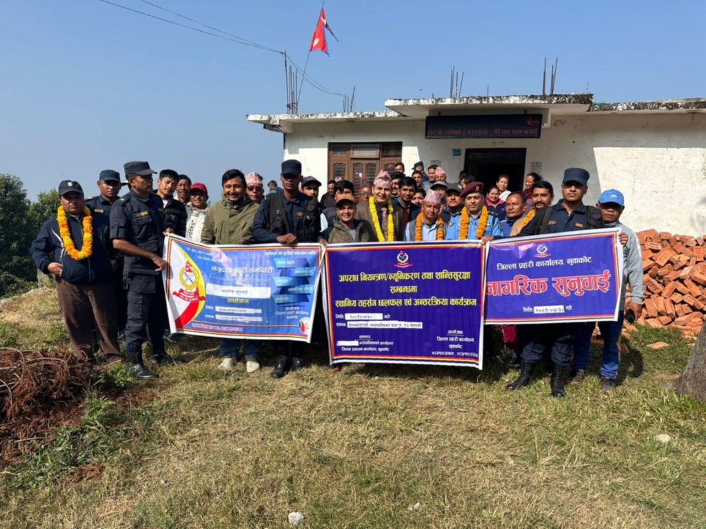 नुवाकोट । नुवाकोटको बेलकोटगढी नगरपालिका–१३ स्थित बाराही नेपाल प्रहरीको चौकी स्थापना गर्न सरोकारवालाहरुले माग गरेका छन् । जिल्ला प्रहरी कार्यालय नुवाकोटको आयोजनामा शुक्रबार सम्पन्न सार्वजनिक सुनुवाईमा बोल्ने अधिकांश सरोकारवालाहरुले बाराहीमा प्रहरी चौकीको स्थापना गरेर शान्ति सुरक्षाको भरपर्दो बन्दोबस्त मिलाउन माग गरेको हो ।