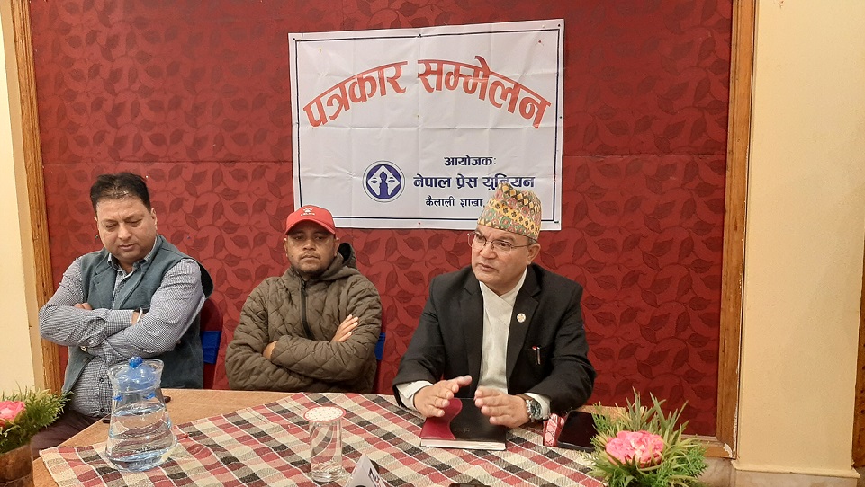 नेपाल प्रेस युनियन कैलाली शाखाले आज धनगढीमा आयोजना गरेको पत्रकार सम्मेलन उहाँले वन र जैविक विविधता संरक्षणसम्बन्धी मन्त्रालयले योजना बनाउर ती योजनाहरूलाई चरणबद्ध रूपमा अगाडि बढाइरहेको उल्लेख गरेका हुन् ।