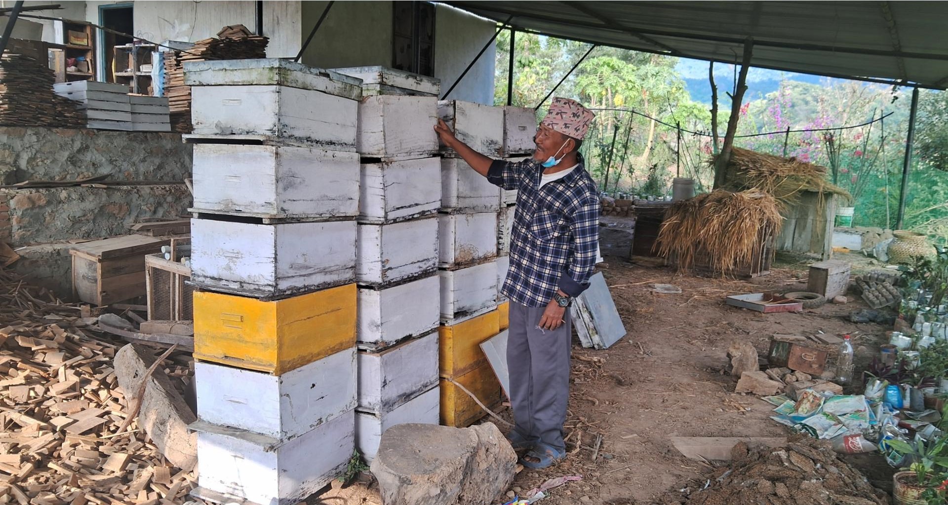 दाङ । दाङ घोराही उपमहानगरपालिका–१३ तुरुन्तपुरका ६० वर्षीय दीपकुमार मगरले व्यावसायिक रूपमा मौरीपालन गरेका छन् । उनले मौरी पालेर जीविका चलाउन थालेको पनि २४ वर्ष भइसक्यो । एक याममा १२ लाखको मह बेच्ने उनको दैनिकी मौरीको हेरचाहमा नै बित्ने गरेको छ ।
