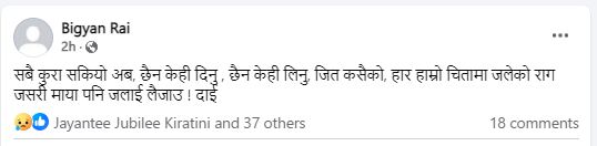 उनले सामाजिक संजाल फेसबुकमा यस्तो लेखेका छन् :