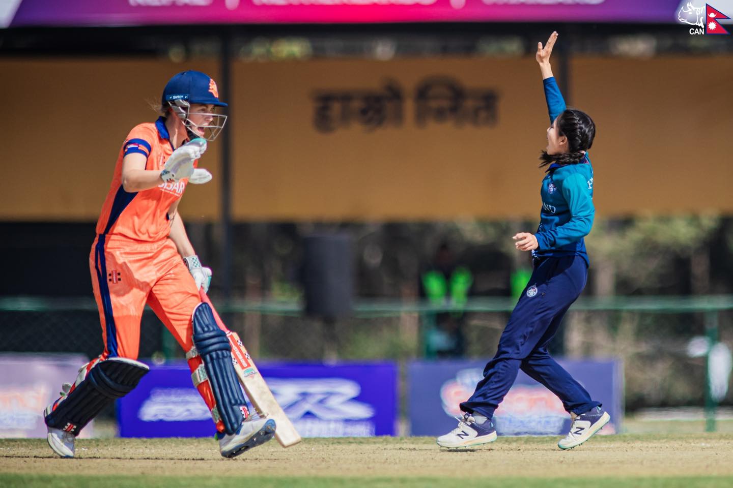 कीर्तिपुरस्थित त्रिवि मैदानमा टस जितेर पहिला ब्याटिङ गरेको नेदरल्याण्ड्सले निरर्धारित २० ओभरमा छ विकेट गुमाएर एक सय २२ रनको योगफल बनाएको हो ।
