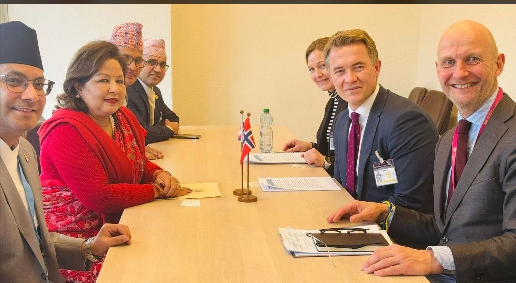 यसैक्रममा सोमबार मन्त्री डा देउवाले नर्वेका उपविदेशमन्त्री एन्ड्रे क्राभिकसँग भेटवार्ता गरे । भेटमा उनले नर्वेले नेपालको शान्ति प्रक्रियाका साथै नेपालको आर्थिक सामाजिक विकासका क्षेत्रमा पुर्याउँदै आएको सहयोगप्रति धन्यवाद ज्ञापन गरे । उनले नेपालले जलवायु परिवर्तनका कारण आफूलाई परेको असर तथा जलवायु न्यायका बारेमा अन्तर्राष्ट्रिय मञ्चहरुमा आवाज उठाउँदै आएकाले त्यसमा सहयोगका लागि पनि नर्वे सरकारको सहयोगको अपेक्षा गरिन् ।