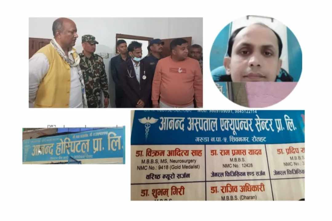 गरुडा शिवनगरमा अबैध हस्पिटल सञ्चालन गरी उपचारको नाममा सर्वसाधारणसँग चर्को शुल्क असुल्दै आएको गुनासोको आधारमा बिहीवार अनुगमन गरिएको मुख्यमन्त्री सिंहले बताएका थिए।