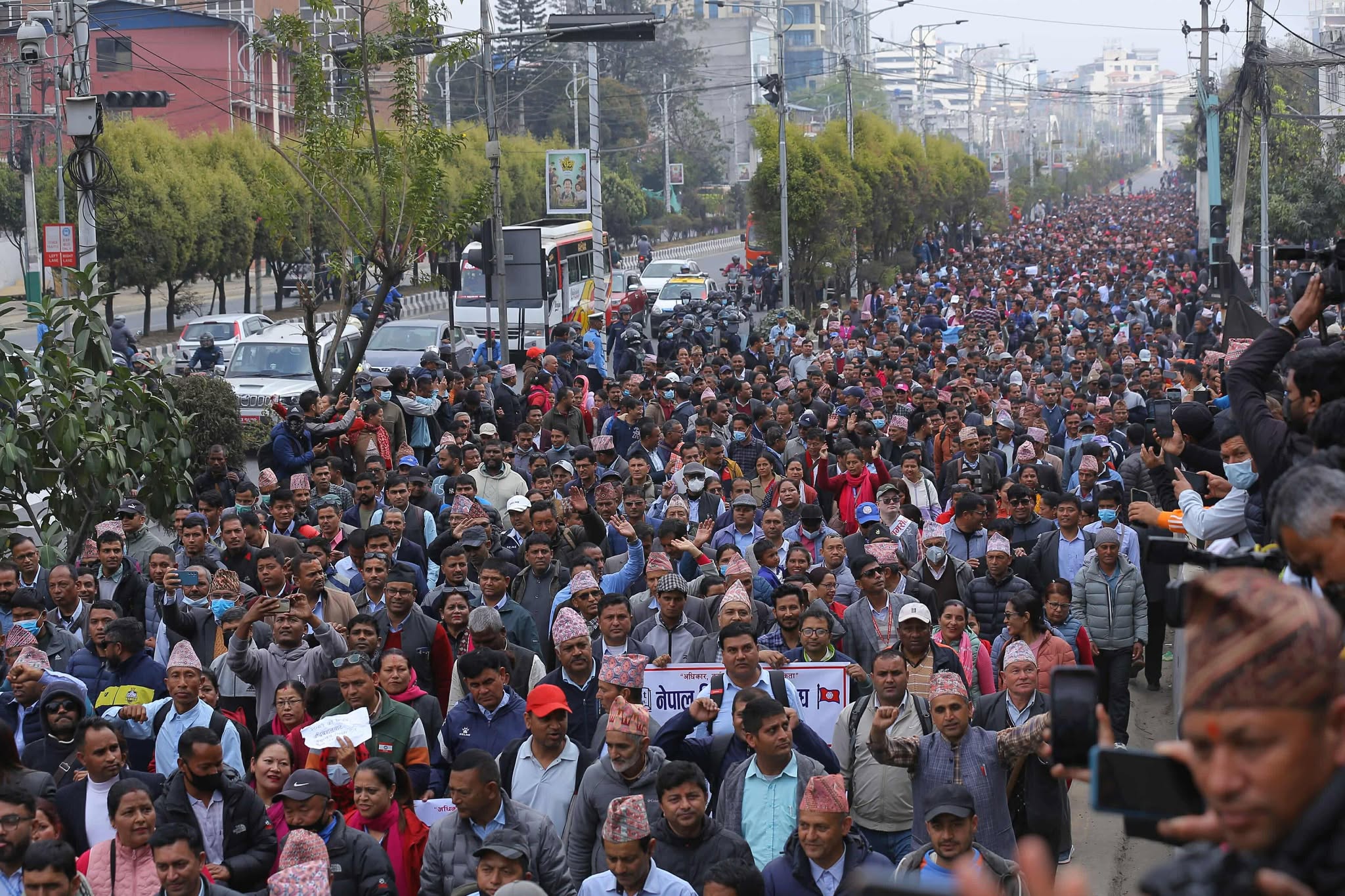 नेपाल शिक्षक महासंघको नेतृत्वमा देशभरका शिक्षकहरूले काठमाडौं केन्द्रित आन्दोलन गरिरहेका छन् । उनीहरुले शनिबार माइतिघर मण्डला क्षेत्रमा र्याली निकालेका छन् । शिक्षकसँगको सम्झौता विपरीत शिक्षा ऐन नआओस् भनेर सरकारलाई दबाब दिन आन्दोलन गरेको महासंघका अध्यक्ष लक्ष्मीकिशोर सुवेदीले जानकारी दिए ।