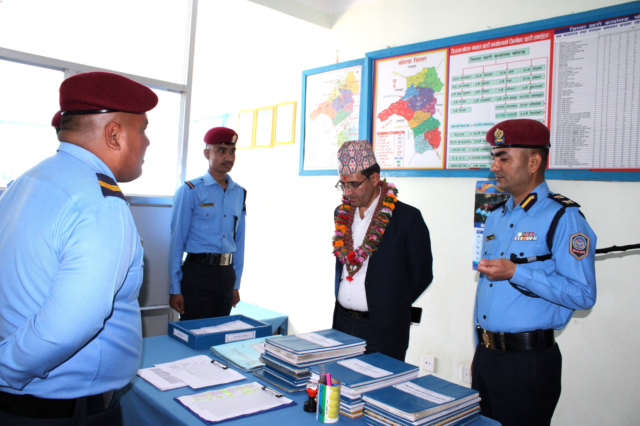 आइतबार खोटाङका प्रमूख जिल्ला अधिकारी नरहरि घिमिरे र सहायक प्रमूख जिल्ला अधिकारी सागर शाहले जिल्ला प्रहरी कार्यालय खोटाङका सम्पूर्ण शाखाहरुको निरीक्षण गरेका हुन् ।