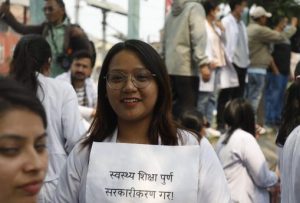 आफूहरूमाथि श्रम शोषण भएको भन्दै सडक प्रर्दशनमा उत्रिएका डाक्टरहरूले माइतीघरमा धर्ना दिएका छन् । उनीहरुले चिकित्सा शिक्षा आयोगको बैठकले गरेका निर्णय कार्यान्वयन नभएको, स्वास्थ्य शिक्षामाथि व्यापारीकरण नरोकिएको, राजनीतिककरण उत्तिकै रहेकोलगायत विभिन्न मागसहित सरकारको ध्यानाकर्षण जनाएका छन् ।
