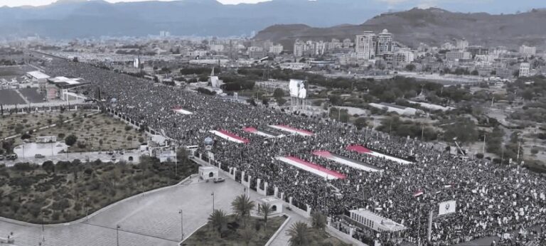 साना । यमनमा अमेरिकी हवाई आक्रमण र गाजामा इजरायलको आक्रमणको विरोधमा यमनको राजधानी सानामा दशौं हजार यमनीहरूले सामूहिक र्याली निकालेका छन् । उत्तरी यमनको धेरैजसो भाग नियन्त्रण गर्ने हुथी नेता अब्दुलमलिक अल–हुथीले यो र्याली आह्वान गरेका थिए ।