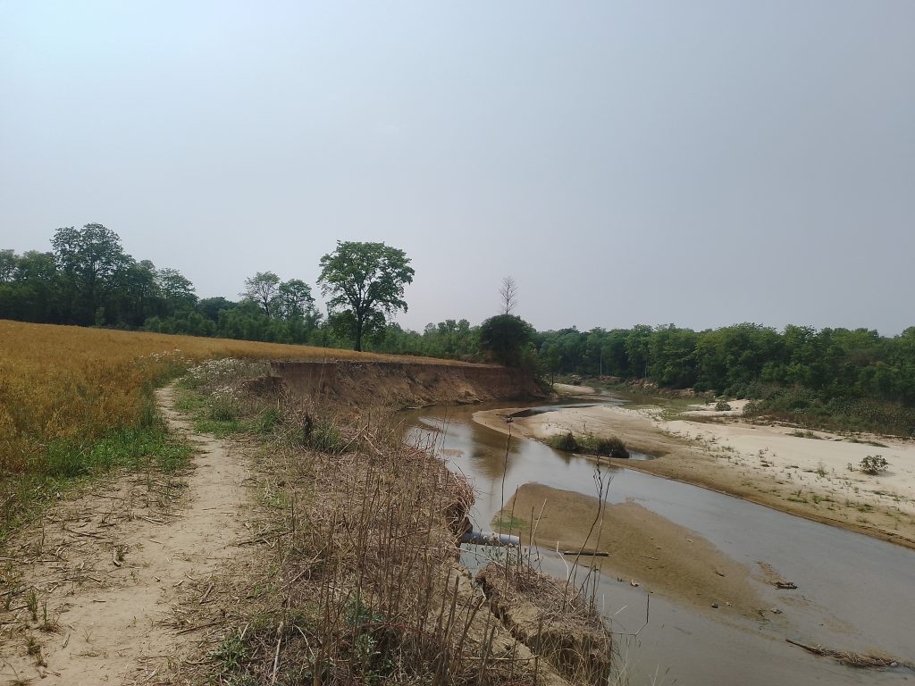 राँझा (बाँके)। खजुरा गाउँपालिका–२ गौघाटस्थित राष्ट्रिय पशु प्रजनन कार्यालयको खेतीयोग्य जमिन मानखोलाको कटानमा पर्दै आएको छ। तटबन्ध नहुँदा करिब दुई बिघा जमिन कटान भइसकेको कार्यालय प्रमुख वरिष्ठ पशुविकास अधिकृत डा खिमानन्द खनालले जानकारी दिए। पछिल्लो दुई वर्षमा कटान तीव्र भएको र गत वर्ष मात्रै डेढ बिघा जमिन बगेको उनले बताए।