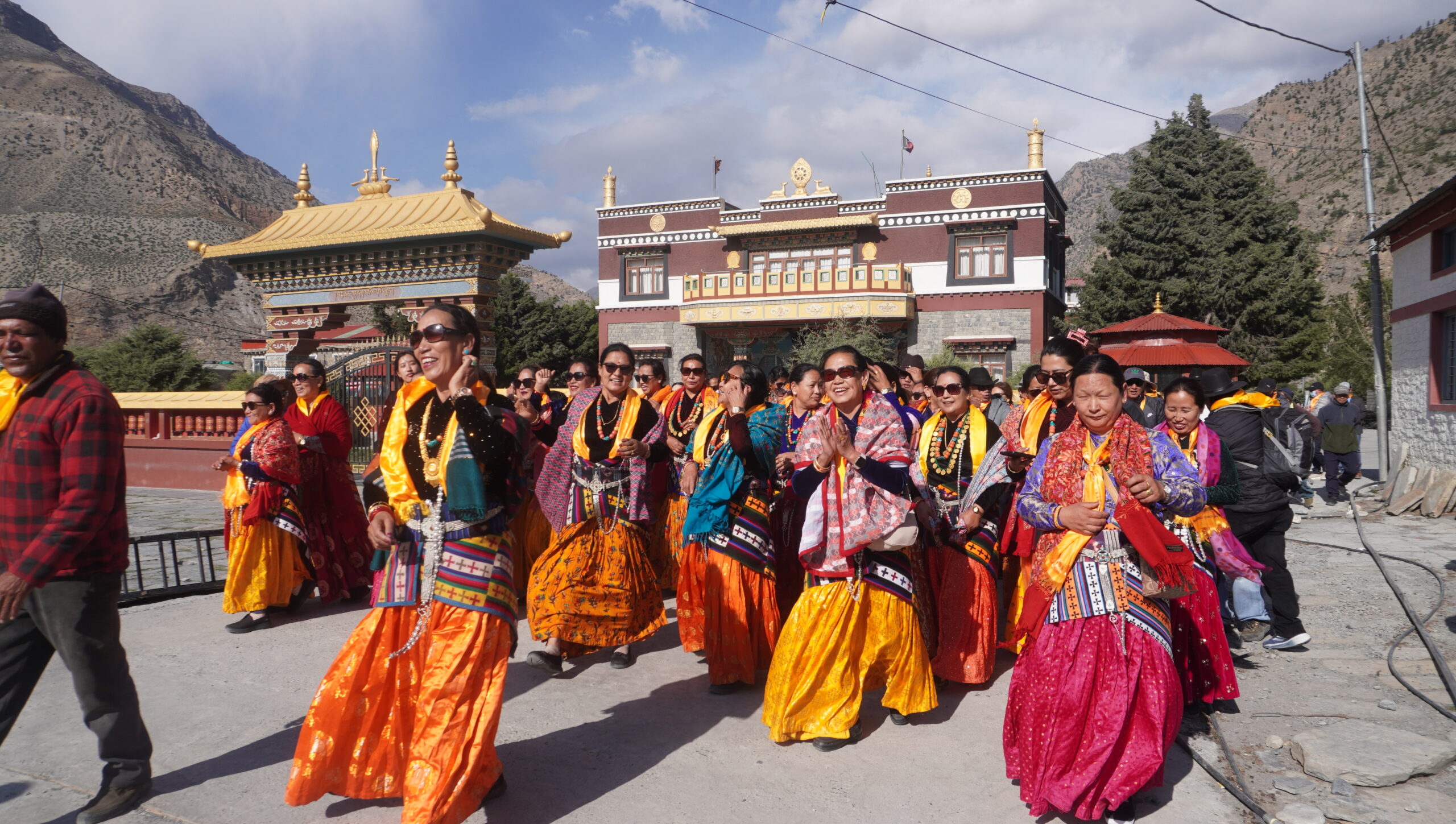 यसैबीच, सोमबार मुस्ताङको जोमसोममा थच्याङ संस्कृति झल्किने गरी परिक्रमा गरिएको छ। समाजका ५७ वर्ष कटेका व्यक्तिको बिदाइमा कुलदेवतालाई सम्झँदै ‘जीवनको गतिशील कर्मबाट मुक्त भयो’ भन्दै ताङ्वे सांस्कृतिक गुरुङ भाषामा गीत गाउँदै पुरुष र महिलाले गाउँ परिक्रमा गराएका हुन्।