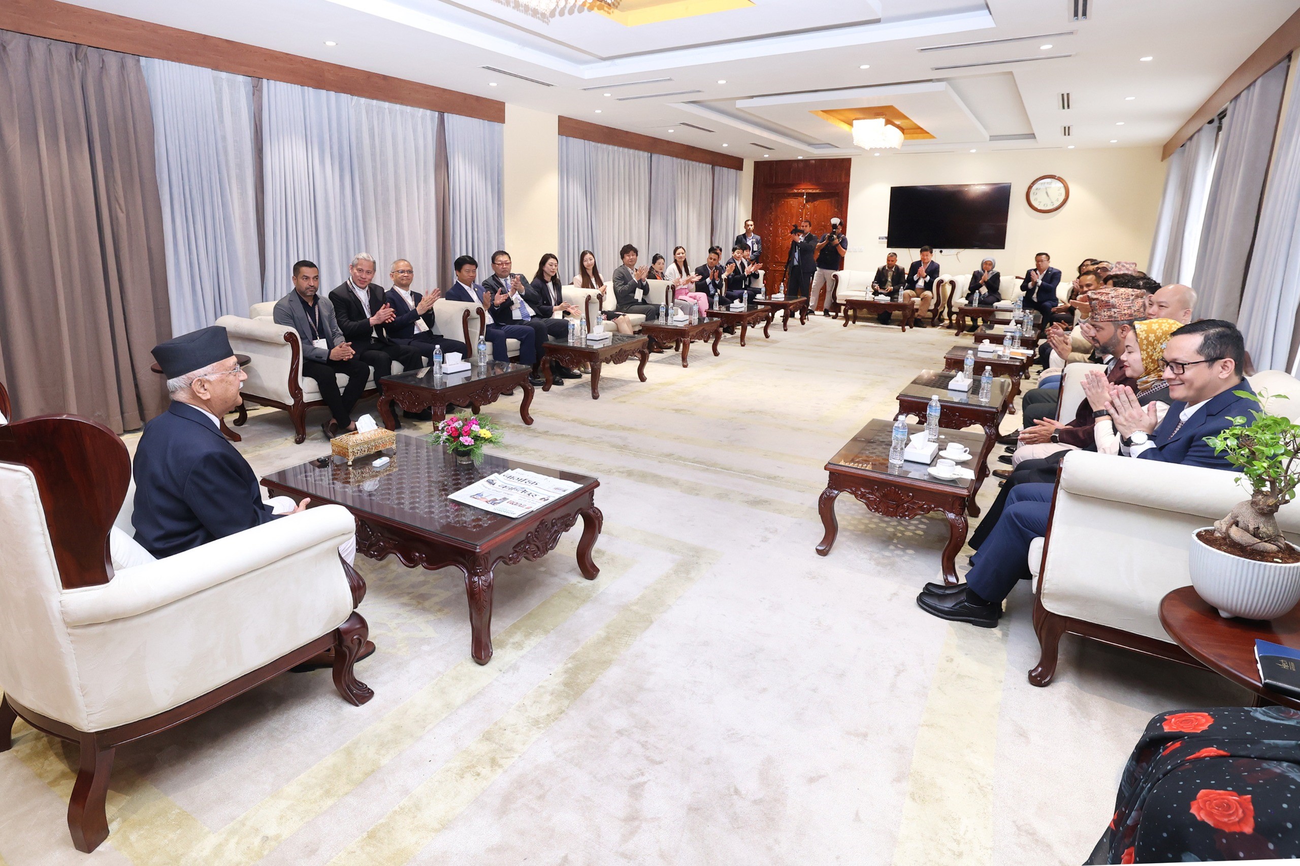 काठमाडौं । प्रधानमन्त्री केपी शर्मा ओलीसँग एसियाली भुक्तानी नेटवर्क (एपिएन) को २१औँ फोरमका सहभागीले आज भेट गरेका छन् ।