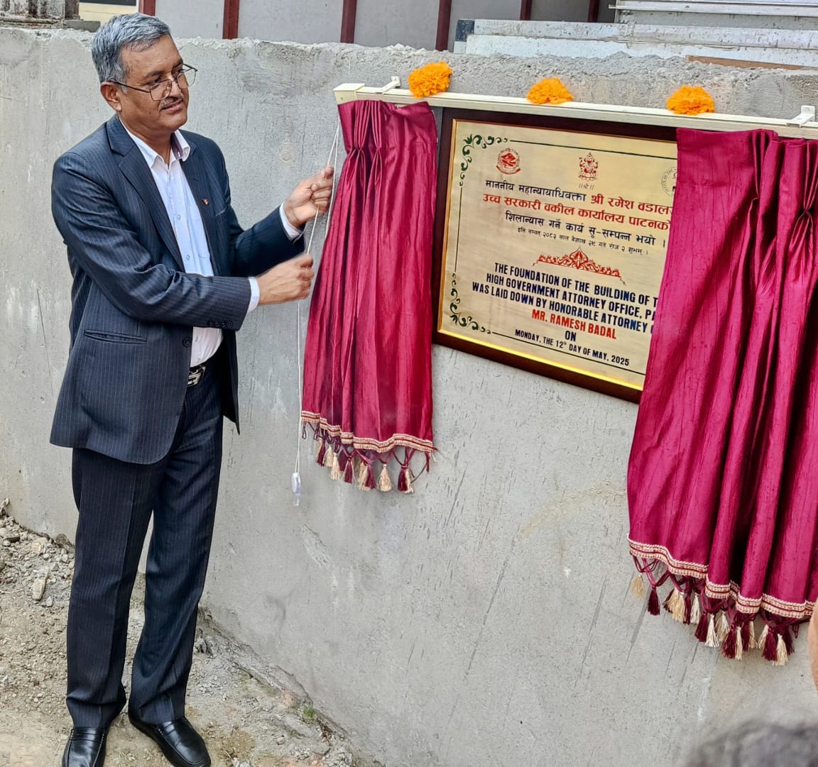 काठमाडौं । महान्यायाधिवक्ता रमेश बडालले उच्च सरकारी वकील कार्यालय, पाटनको भवन शिलान्यास गरेका छन् ।