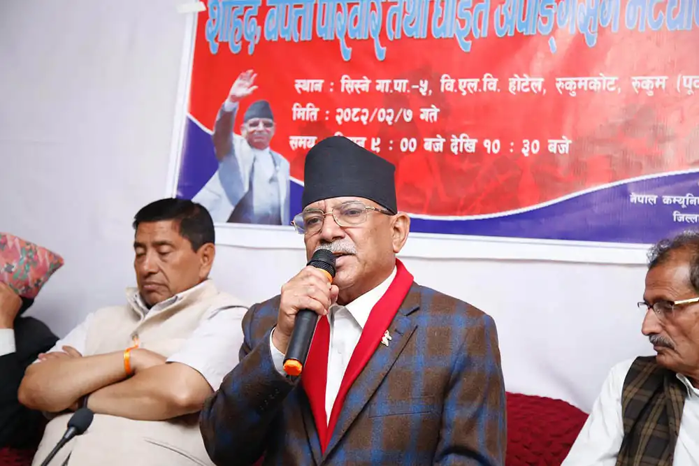 रुकुमपूर्व । नेकपा माओवादी केन्द्रका अध्यक्ष तथा गणतन्त्र नेपालका प्रथम जननिर्वाचित प्रधानमन्त्री पुष्पकमल दाहाल ‘प्रचण्ड’ नेतृत्वको जनतासँग माओवादी – मध्यपहाडी लोकमार्ग जनजागरण अभियान झरीका बीच रुकुमपूर्वको सिस्ने गाउँपालिका–५, रुकुमकोटमा पुगेको छ । सो अवसरमा अध्यक्ष प्रचण्डले जनयुद्धका शहीद परिवार, बेपत्ता व्यक्तिका आफन्त तथा घाइते अपाङ्ग योद्धाहरूको अवस्थाबारे जानकारी लिँदै भेटघाट गरेका छन् ।