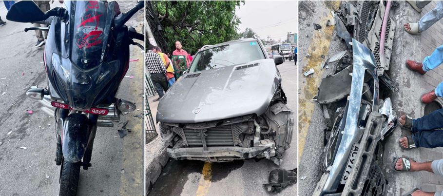 जिल्ला प्रहरी परिसरका अनुसार एयरपोर्टतर्फ जाँदै गरेको गोकर्णेश्वर यातायातको बा।५ ख ६७३५ नम्बरको बसले कार, मोटरसाइकल र स्कुटरहरूलाई एकपछि अर्को गर्दै ठक्कर दिएको हो।