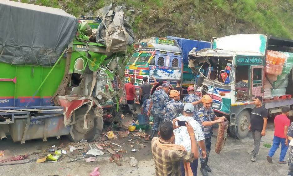आज बिहान समयमा नारायणगढबाट मुग्लिनतर्फ जाँदै गरेको बागमती प्रदेश ०१-००६ ख ६२८७ नम्वरको ट्रक र मुग्लिनबाट नारायणगढतर्फ आउँदै गरेको ना ६ ख ९८९७ नम्वरको ट्रक एक आपसमा ठक्कर खाँदा सात जना घाइते भएका हुन् ।