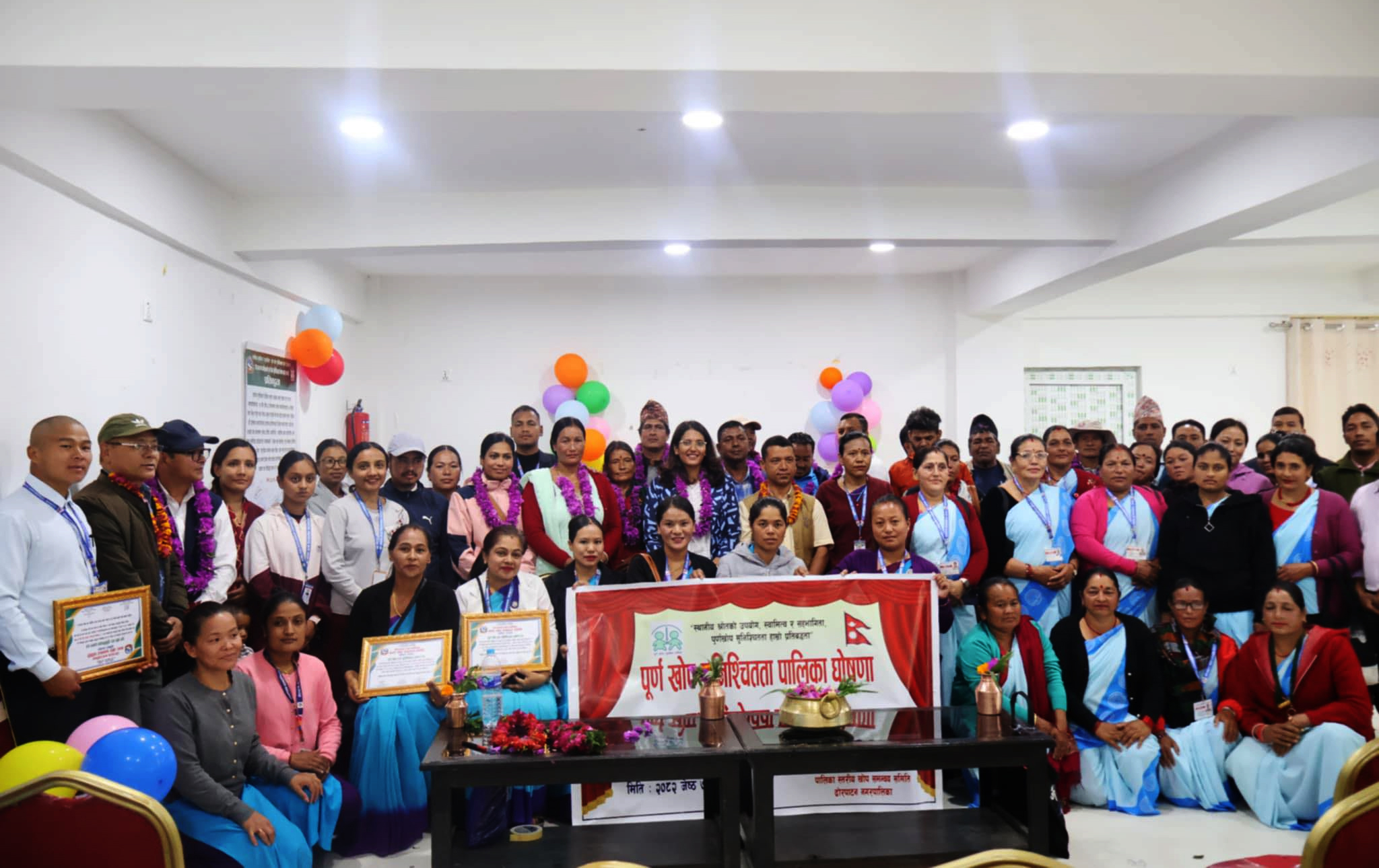 बागलुङ । बागलुङका पाँच स्थानीय तहलाई पूर्णखोप सुनिश्चितता तथा दिगोपन भएका पालिका घोषणा गरिएको छ ।जिल्लाको बागलुङ, गलकोट, ढोरपाटन र जैमिनी नगरपालिका तथा ताराखोला गाउँपालिकालाई पूर्णखोप सुनिश्चितता तथा दिगोपन भएका पालिका घोषणा गरिएको हो ।