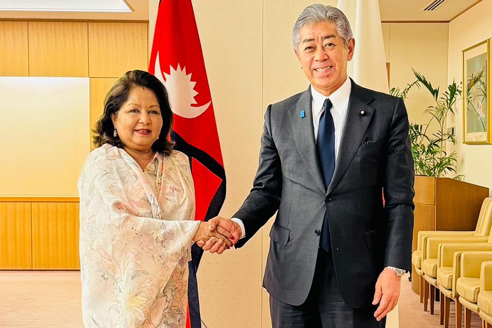 काठमाडौँ। परराष्ट्रमन्त्री डा. आरजु राणा देउवा र जापानका विदेशमन्त्री इवाया ताकेसीबीच बिहीबार टोकियोमा द्विपक्षीय भेटवार्ता भएको छ। जापान भ्रमणमा रहेकी मन्त्री डा. राणा र जापानी विदेशमन्त्री ताकेसीबीच आज टोकियोस्थित विदेश मन्त्रालयमा भेटवार्ता भएको हो।