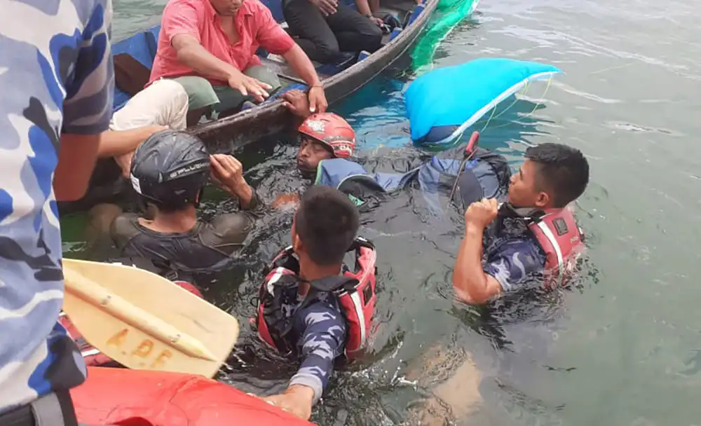 कास्की जिल्लाको पोखरा महानगरपालिका–१८ तोरेपानीबाट उडेको २ वटा प्याराग्लाईडिङ्ग ल्याडिङ्ग गर्ने क्रममा अनियन्त्रित भई फेवा तालको बीच भागमा खसेको थियो ।