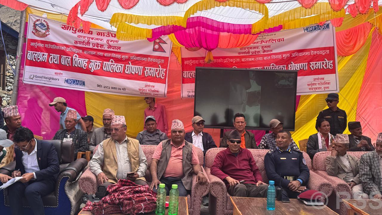 अदानचुली (हुम्ला) जिल्लाका सात वटा स्थानीय तहमध्ये खापुनाथ गाउँपालिका बालश्रम तथा बालविवाहमुक्त पालिका घोषणा भएको छ। कर्णाली प्रदेश सरकारका पूर्वमुख्यमन्त्री जीवनबहादुर शाहीले डिजिटल प्रविधिमार्फत सुर्खेतबाट कार्यक्रमको उद्घाटन गर्दै खार्पुनाथलाई हुम्लाको पहिलो बालश्रम तथा बालविवाहमुक्त पालिका घोषणा गरेका हुन्।
