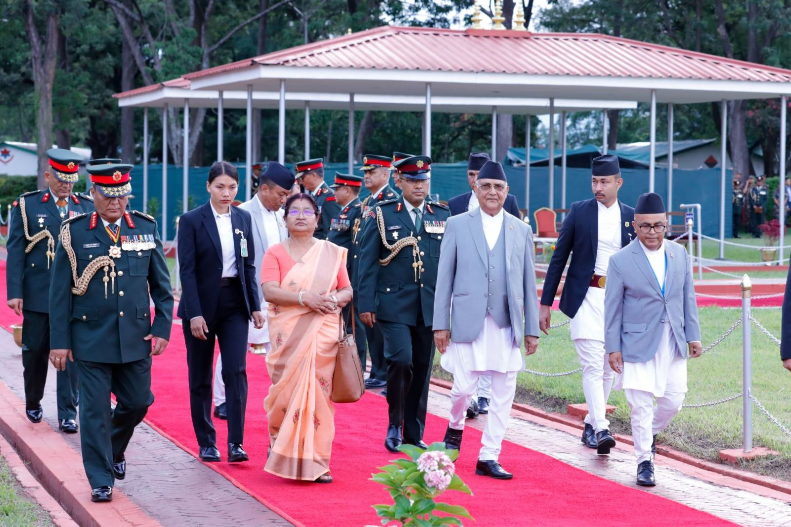 प्रधानमन्त्री ओलीलाई त्रिभुवन अन्तर्राष्ट्रिय विमानस्थलको अतिविशिष्ट कक्षमा उपप्रधानमन्त्री एवं सहरी विकासमन्त्री प्रकाशमान सिंह, गृहमन्त्री रमेश लेखक, संस्कृति, पर्यटन तथा नागरिक उड्डयनमन्त्री बद्रीप्रसाद पाण्डे र मुख्यसचिव एकनारायण अर्यालले बिदाइ गरे । प्रधानमन्त्रीको बिदाइका लागि विमानस्थमा उच्च पदस्थ सरकारी अधिकृत एवं सुरक्षा निकायका प्रमुख उपस्थित थिए ।