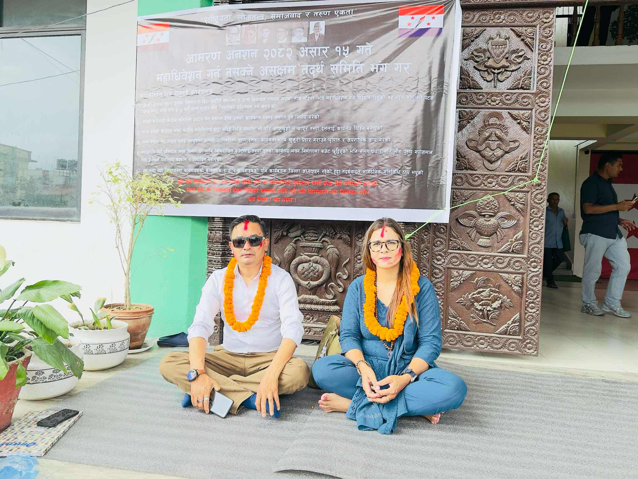 तरुण दलका केन्द्रीय सदस्य रोजन राई र अम्बिका बाँस्कोटा आइतबारदेखि अनशनमा बसेका हुन् । उनीहरुले ६ बुँदे माग राख्दै पार्टी कार्यालयको मुल ढोकामै अनशन सुरु गरेका हुन् ।