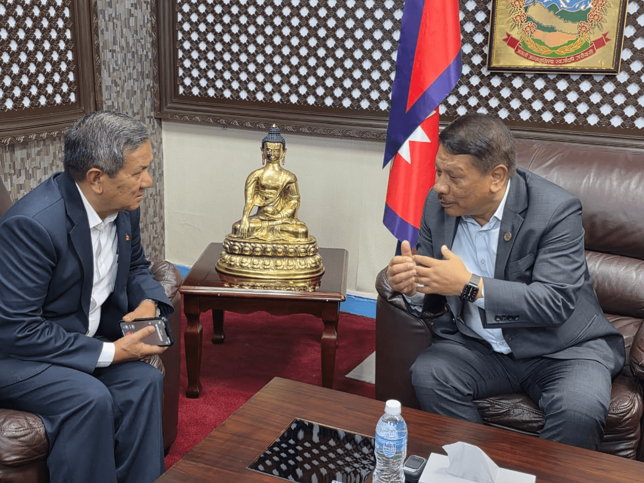 काठमाडौँ । विपद्जन्य सूचना प्रवाह प्रणालीलाई प्रभावकारी बनाउने विषयमा कार्यवाहक प्रधानमन्त्री प्रकाशमान सिंह र सञ्चारमन्त्री पृथ्वी सुब्बा गुरुङबिच छलफल भएको छ । सहरी विकास मन्त्रालयमा आज भएको भेटमा सूचना प्रवाहका लागि सञ्चार मन्त्रालयले गर्न सक्ने कामका बारेमा छलफल भएको हो । आइतबार कार्यवाहक प्रधानमन्त्री सिंहको अध्यक्षतामा बसेको राष्ट्रिय विपद् व्यवस्थापन परिषद्को बैठकले विपद् जोखिमलाई ध्यान दिँदै मौसम पूर्वानुमानपछिको पूर्वसूचनालाई प्रभावकारी बनाउने निर्णय भएको थियो ।