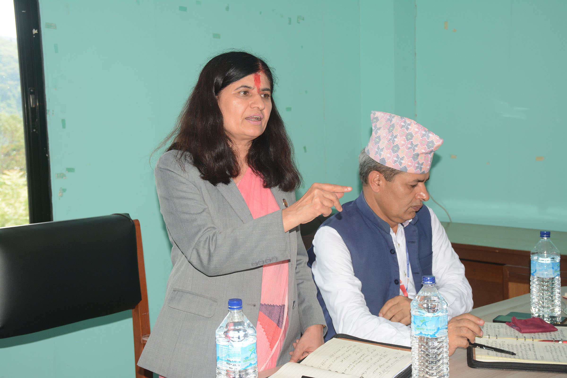 त्यस क्रममा प्रमुख जिल्ला अधिकारी रामकृष्ण अधिकारीले जिल्लाका समस्या र सेवा प्रवाहबारे जानकारी गराए । उनले प्रशासन कार्यालयमा सेवाग्राहीको बढ्दो चापका कारण इलाका प्रशासन कार्यालय आवश्यक रहेको बताउँदै त्यसका लागि प्रक्रियामा गइसकेकाले सहजीकरणको लागि मन्त्री न्यौपानेको ध्यानाकर्षण गराए ।