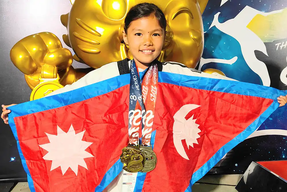 काठमाडौँ। थाइल्याण्डमा सम्पन्न आठौँ हिरोज अन्तरराष्ट्रिय तेक्वान्दो प्रतियोगितामा वैभवी सापकोटाले उत्कृष्ट प्रदर्शन गर्दै एक स्वर्ण र दुई कास्यसहित तीन पदक जितेकी छिन् । यही साउन २४ र २५ गते भएको उक्त प्रतियोगितामा विभिन्न २७ राष्ट्रका करिब चार हजारभन्दा बढी खेलाडीको सहभागिता रहेको थियो ।