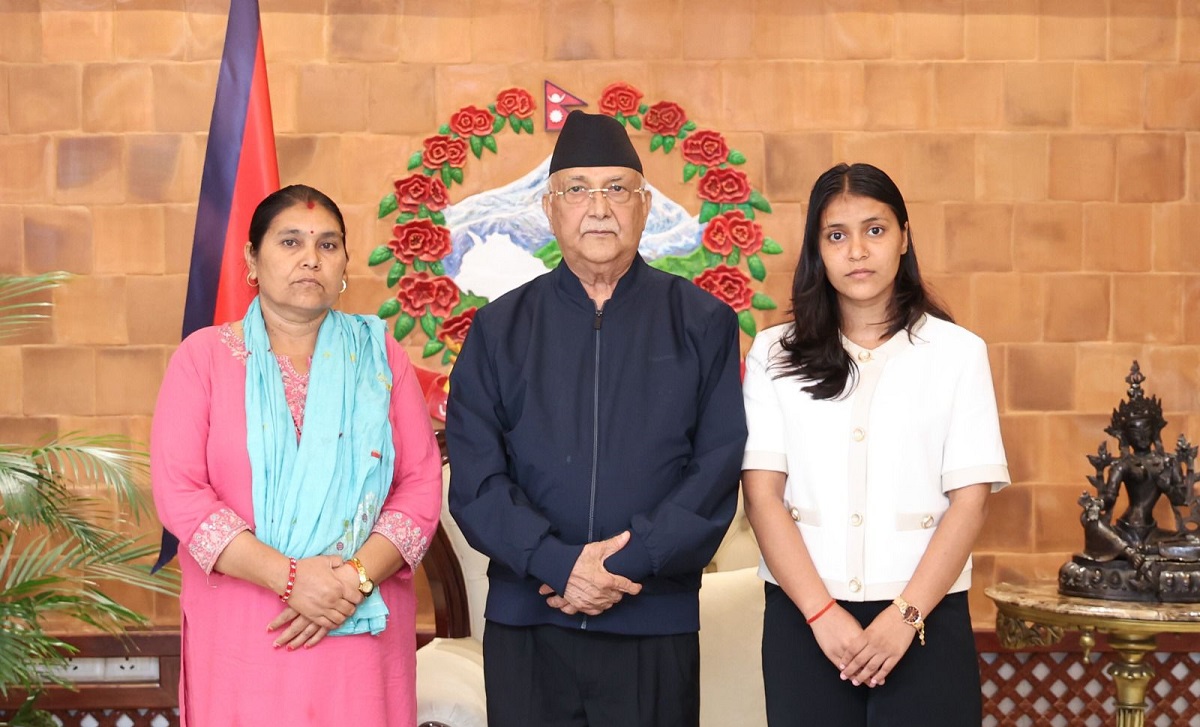 काठमाडौं। हमास समूहले इजरायलमा आक्रमण गरी नियन्त्रणमा लिएर बेपत्ता बनाएका कञ्चनपुरका विपिन जोशीकी आमा पद्मा र बहिनी पुष्पाले प्रधानमन्त्री केपी शर्मा ओलीसँग भेट गरेका छन् । सामाजिक सञ्जालमा लेख्दै प्रधानमन्त्री ओलीले यसबारे जानकारी गराएका हुन् ।