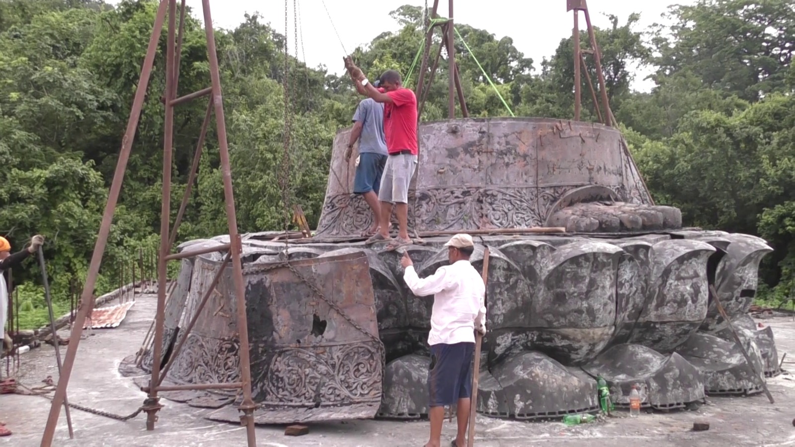 विसं २०७४ बाट सुरु भएको मूर्ति निर्माण कार्य पाँच वर्षमा भित्रमा सक्ने लक्ष्य लिइएको भए पनि कोरोना संक्रमणले एक वर्ष थपेर २०८० सम्म सक्ने लक्ष्य लिइएको थियो । मूर्ति निर्माणका लागि भ्याली कन्स्ट्रक्सनसँग रु १० करोड ८१ लाखमा ठेक्का सम्झौता भएको छ । मूर्ति निर्माणका लागि २५ देखि ३० टनसम्म अष्टधातु आवश्यक पर्ने अनुमान गरिए पनि कमल आशनमा मात्रै १० टन बढी धातु प्रयोग भएको र त्यसको मात्रामा थप बढ्ने देखिएको छ ।