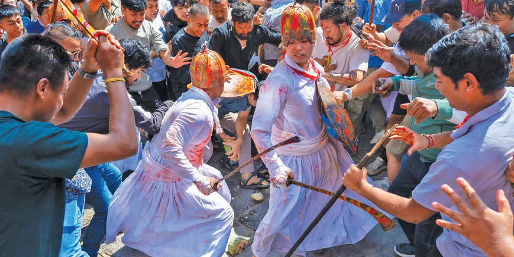 भादगाउँ। बडादसैँको ११ औँ दिन पापाङ्कुशा एकादशीको अवसरमा शुक्रबार मध्यपुर थिमिमा मल्लकालीन युद्धको झल्को दिने गरी ‘खाँ पिहाँवईगु’ (खाँ निस्कने) जात्रा सम्पन्न भएको छ ।