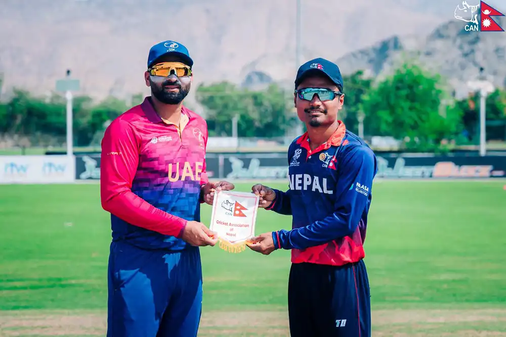 काठमाडौँ। आइसिसी पुरुष टि–ट्वान्टी एसिया तथा इस्ट एसिया–प्यासिफिक छनोटको सुपर सिक्सअन्तर्गत संयुक्त अरब इमिरेट्स (युएई) विरूद्धको खेलमा नेपालले टस जितेर पहिले ब्याटिङ रोजेको छ ।