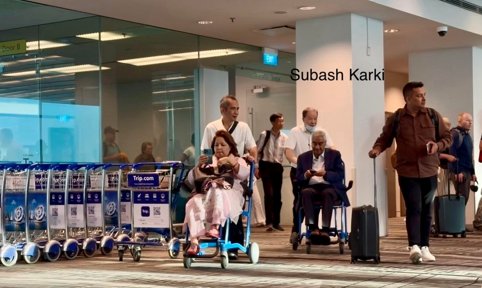 आज बिहान सिंगापुरको चाङ्गी अन्तर्राष्ट्रिय विमानस्थलमा ओर्लिने क्रममा देउवा दम्पती ह्विलचेयरमा देखिएका थिए, जसपछि उनीहरूको स्वास्थ्य अवस्थाबारे विभिन्न अड्कलबाजी फैलिएका छन्। सभापति देउवाका स्वकीय सचिव भानु देउवाका अनुसार यो भ्रमण नियमित स्वास्थ्य परीक्षणका लागि हो।